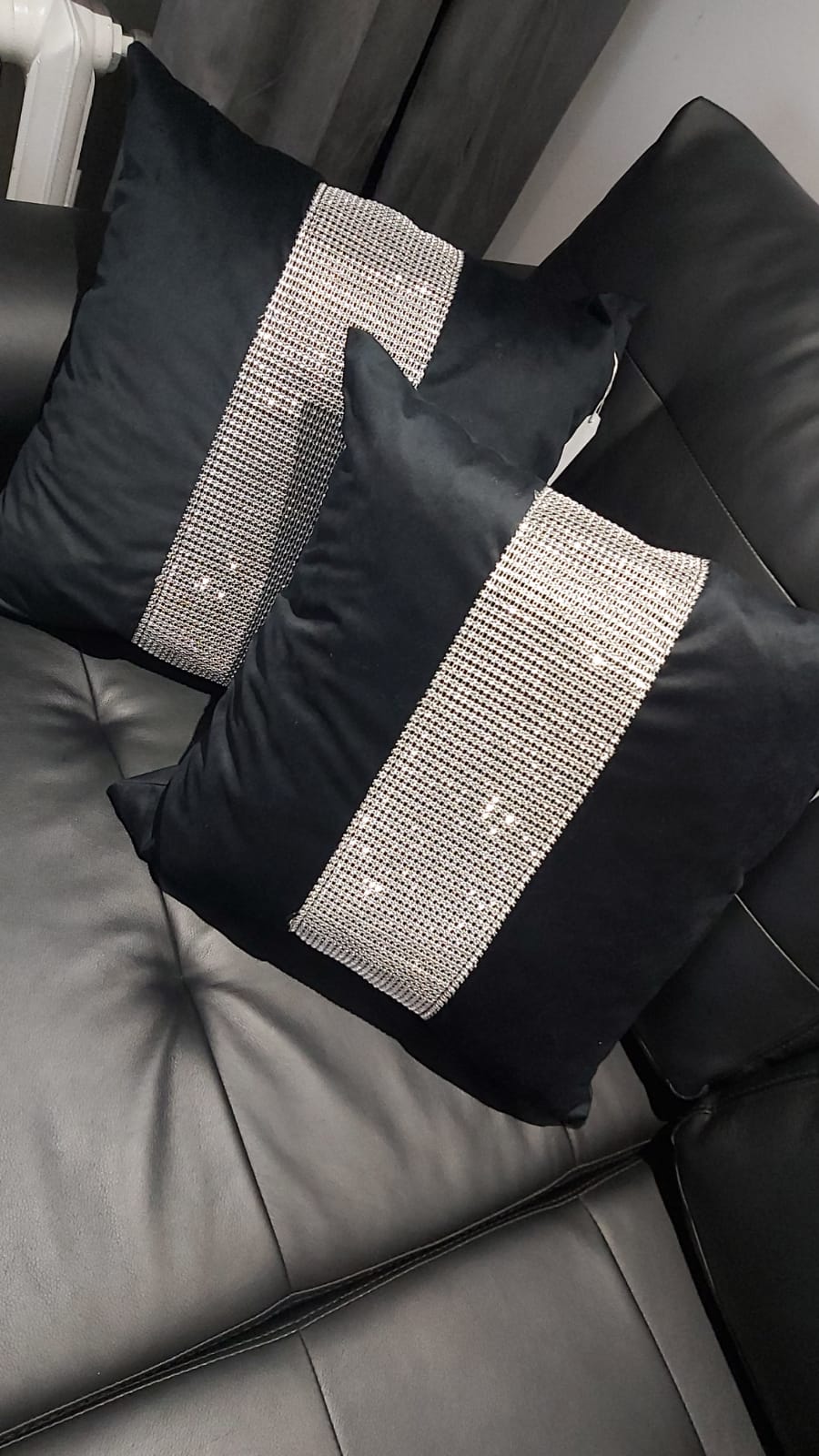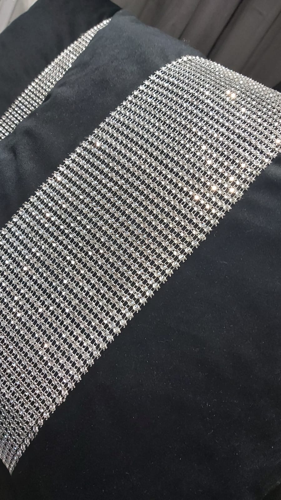 Dwustronna poduszka wykonana z atłasu i velvetu. Bardzo miękka i przyjemna w dotyku, posiada dekoracyjną taśmę z cyrkoniami. Sprzedawana z wypełnieniem. Można prać w temp do 30C.